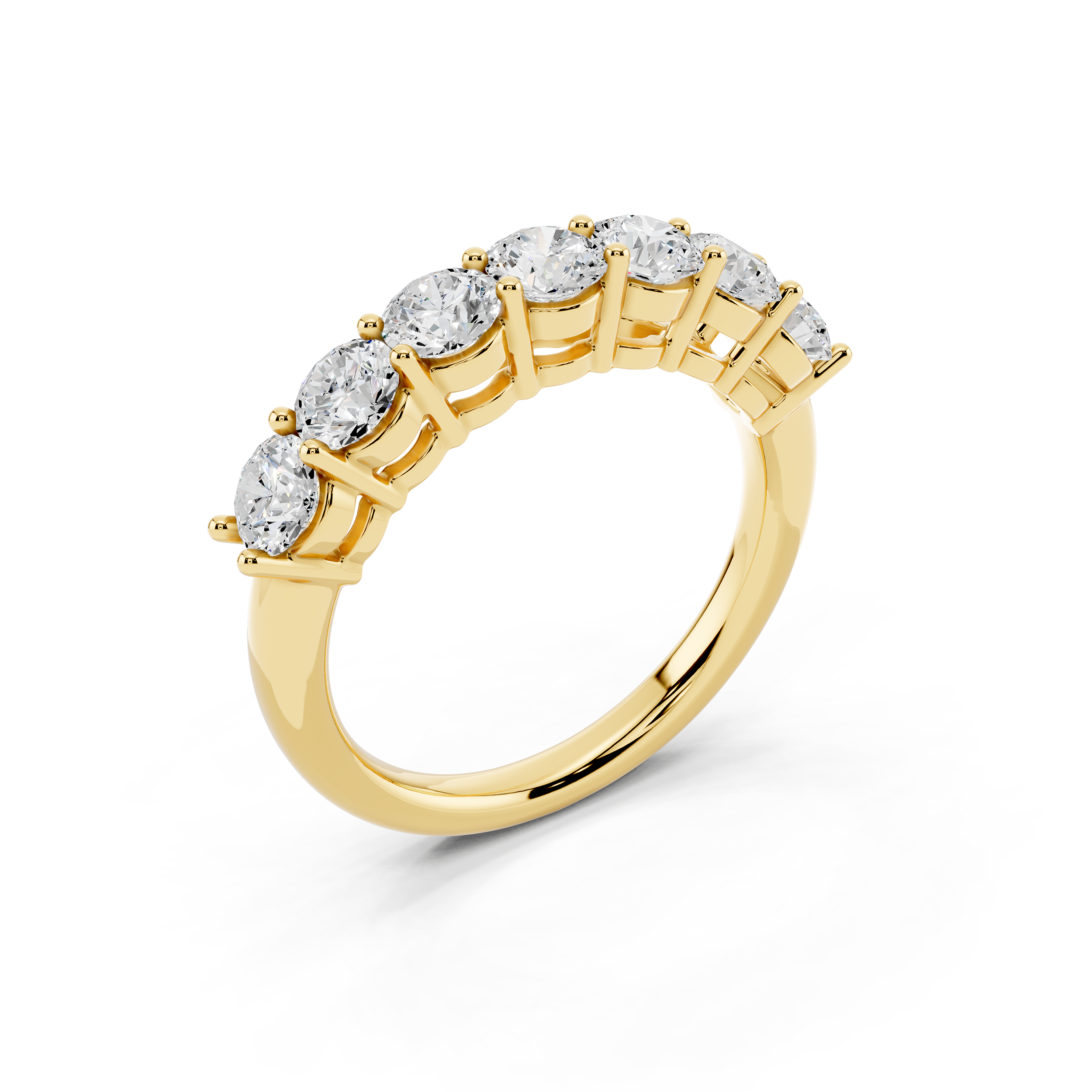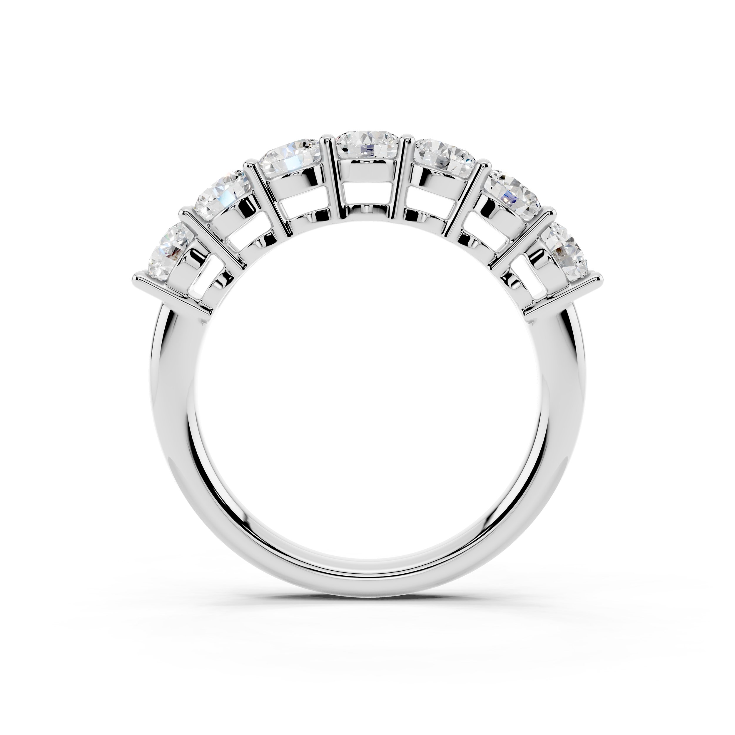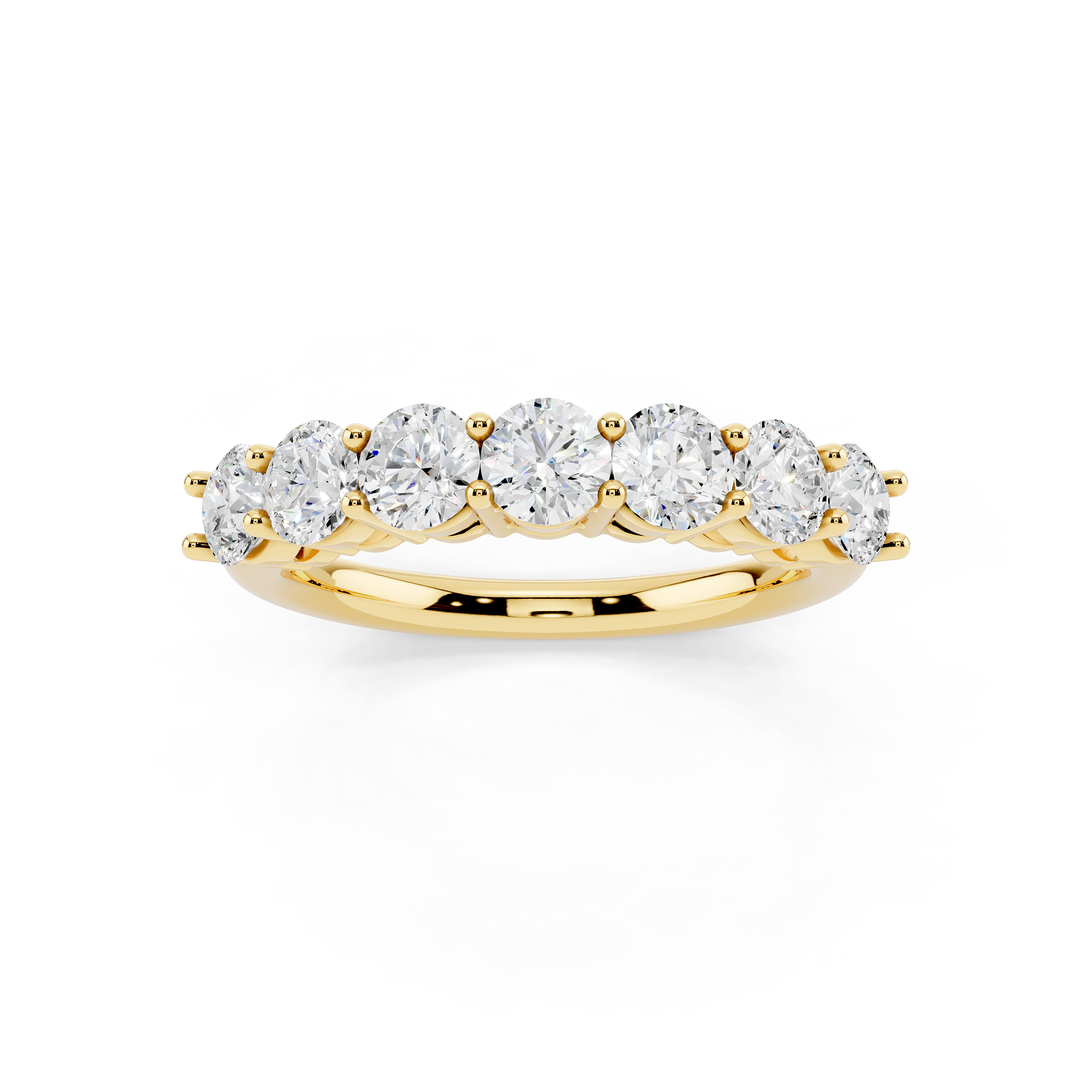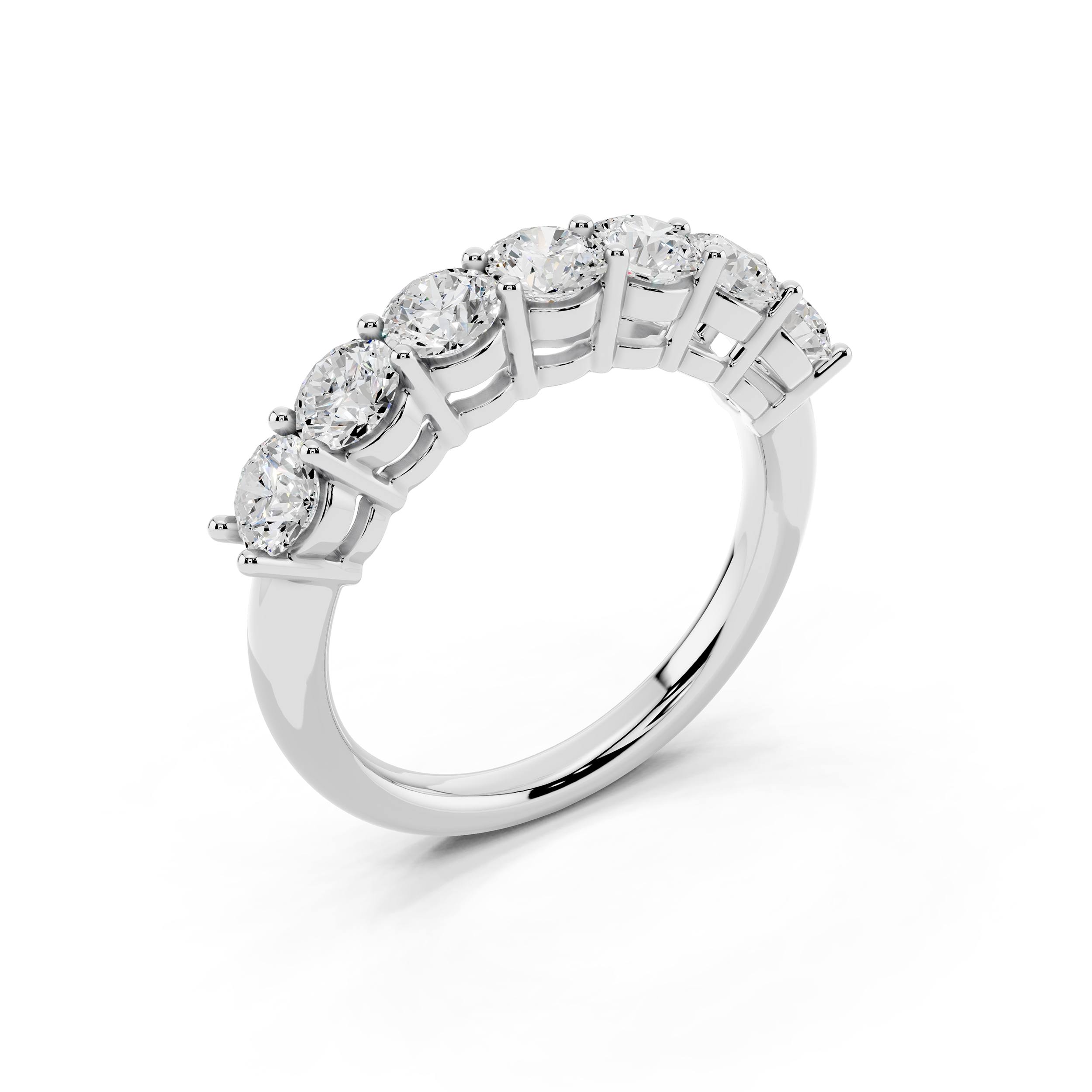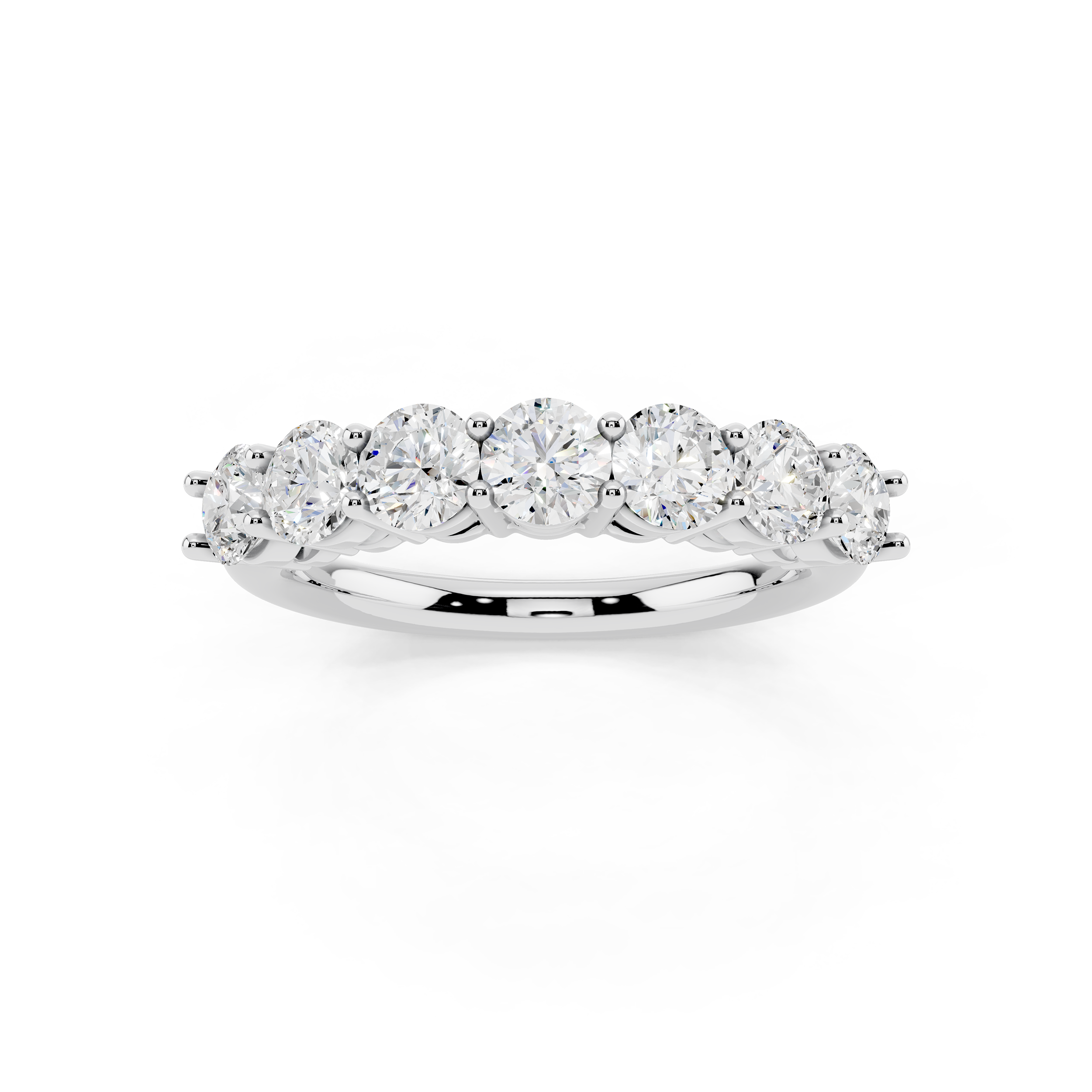 A classic 7-stone design that captures the essence of balance and brilliance. Each round stone is set to sit prominently, creating a radiant arc of light across the finger. Perfect as a symbol of lasting moments or simply timeless style.