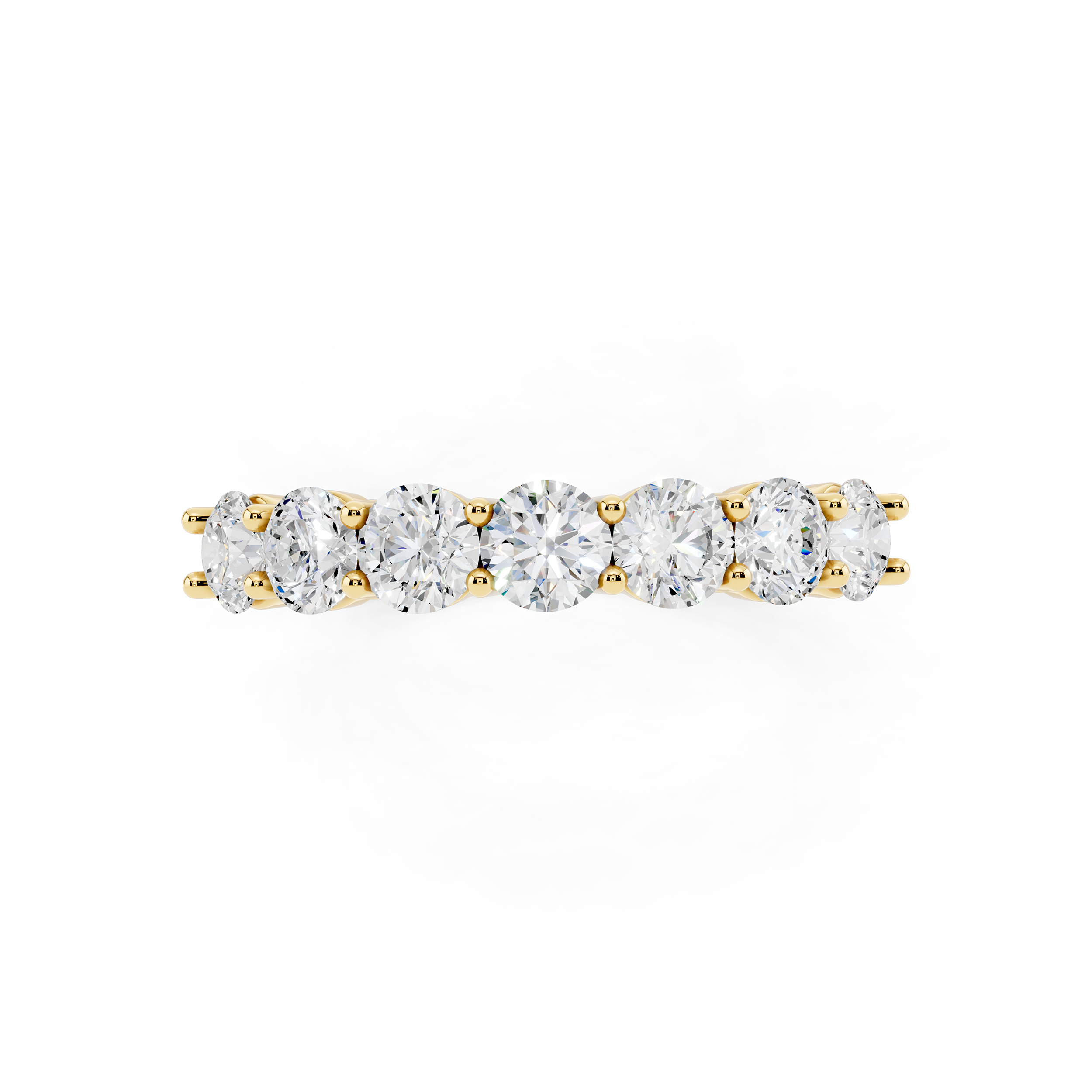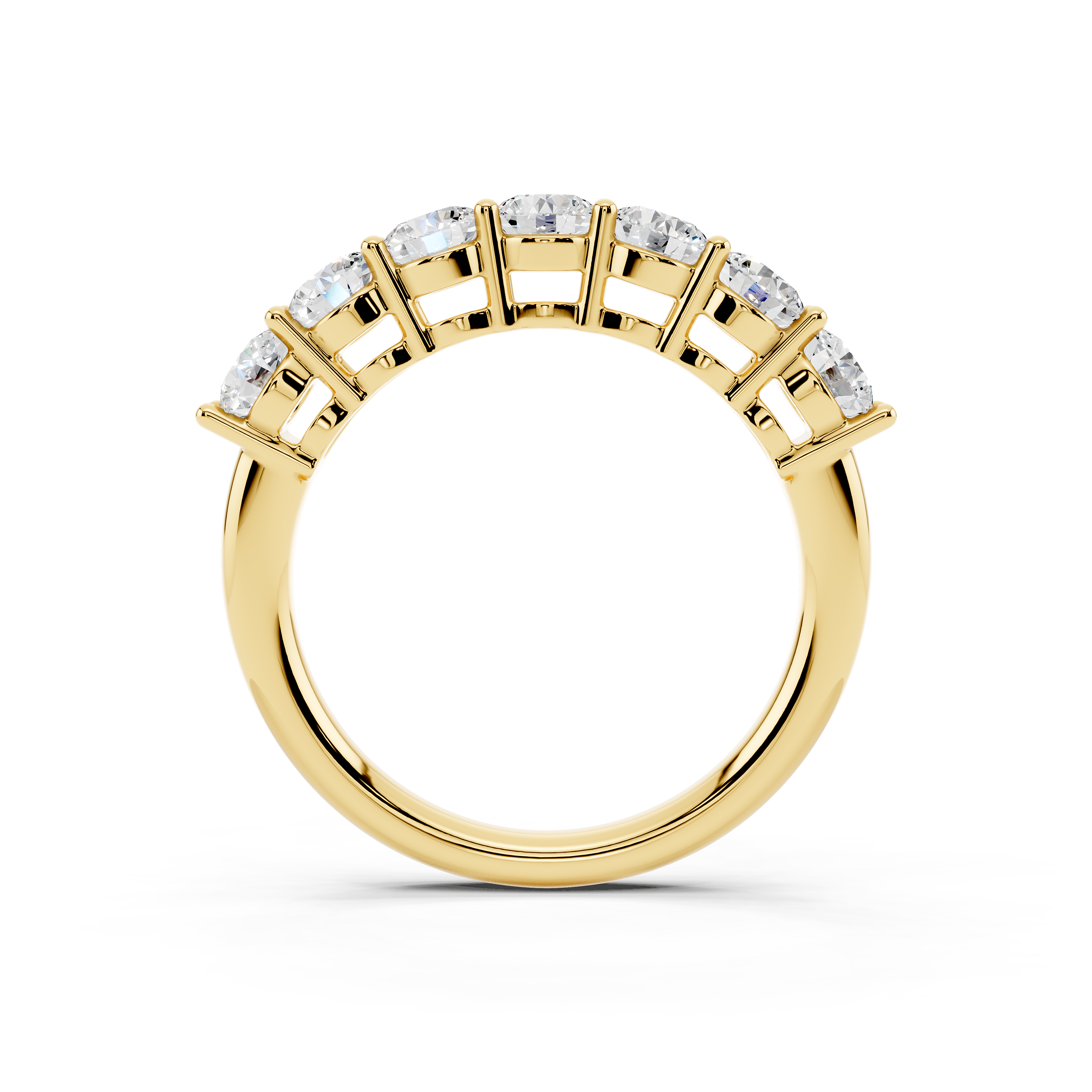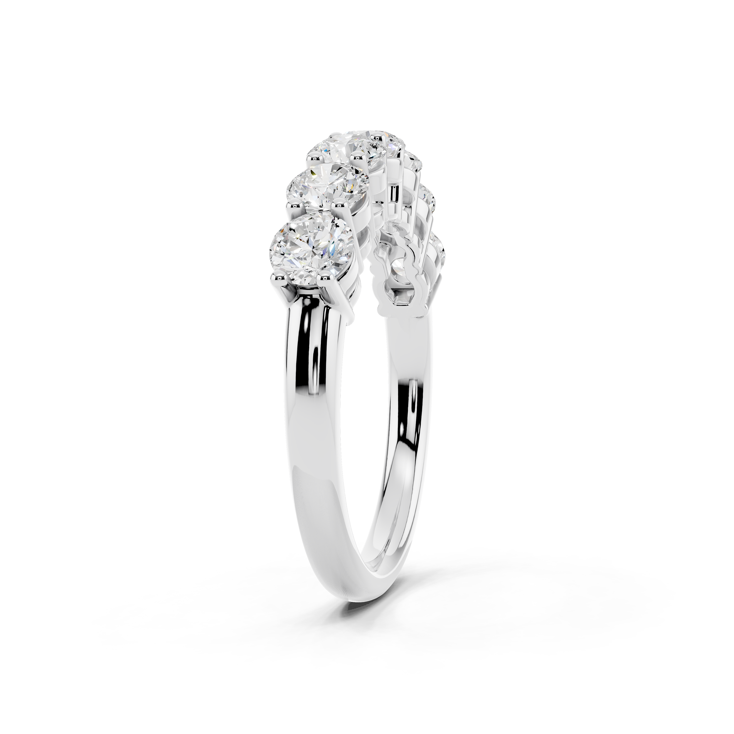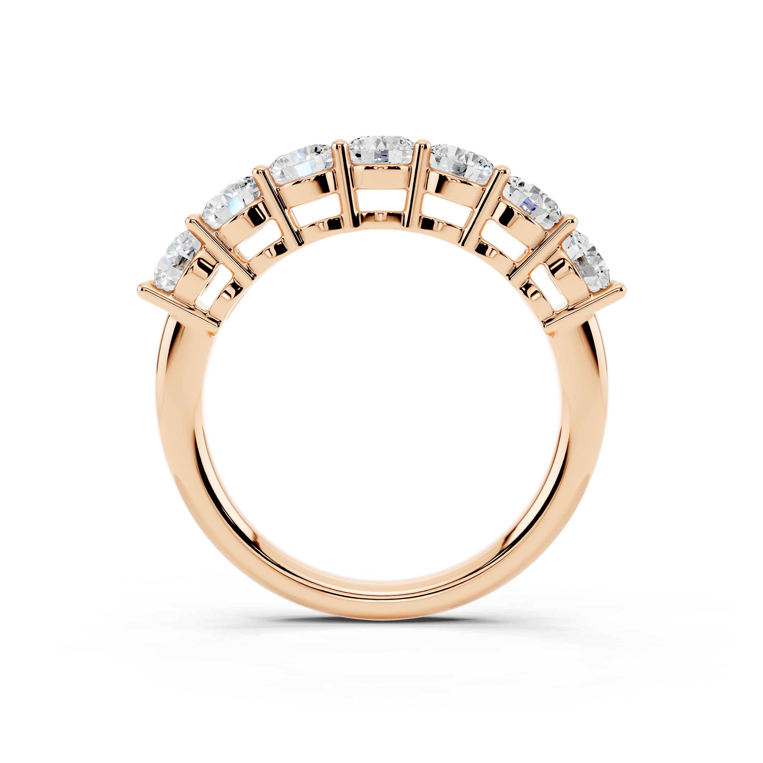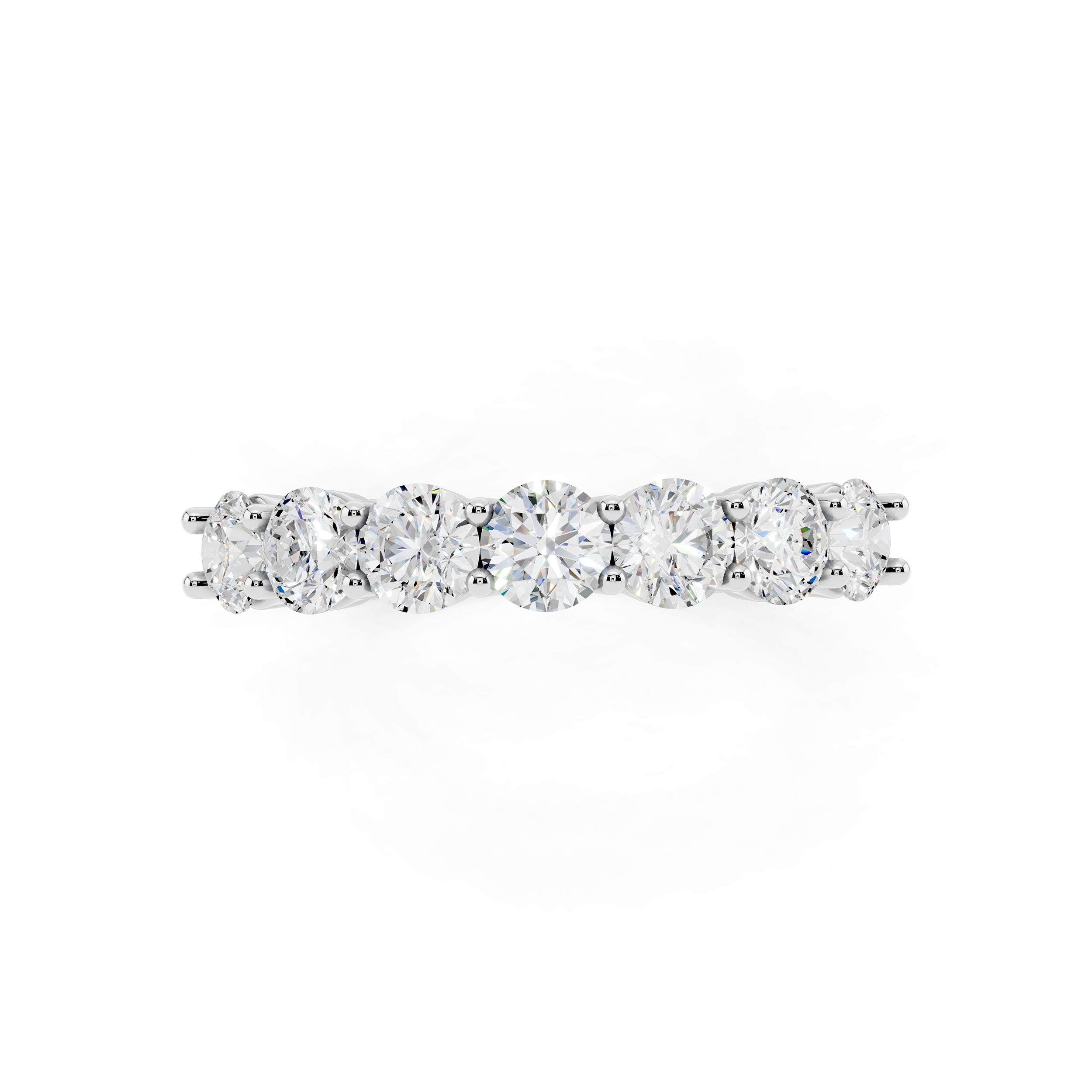 A classic 7-stone design that captures the essence of balance and brilliance. Each round stone is set to sit prominently, creating a radiant arc of light across the finger. Perfect as a symbol of lasting moments or simply timeless style.