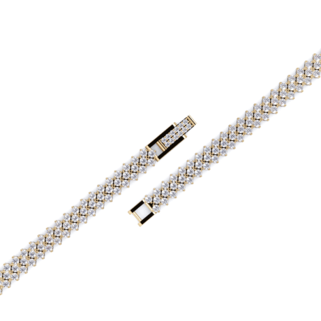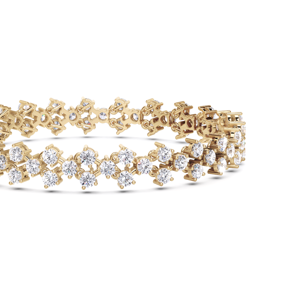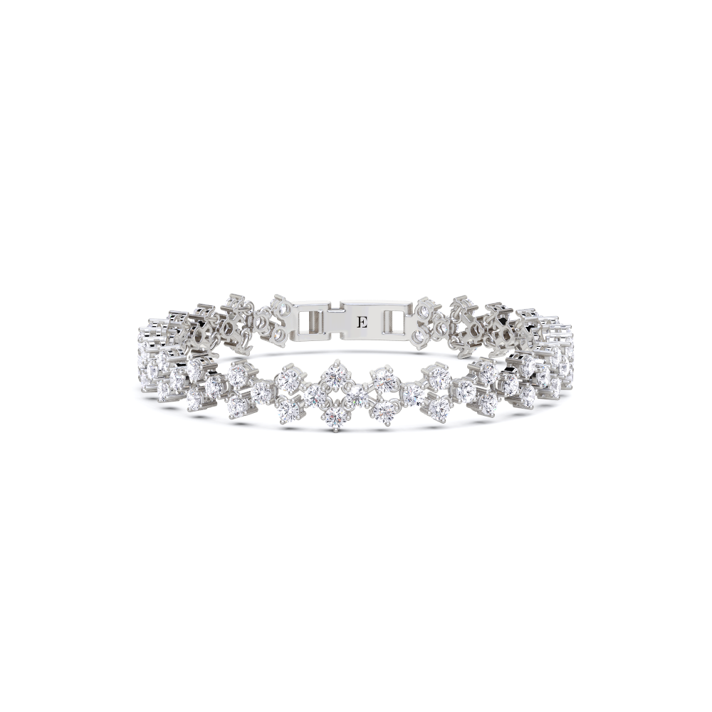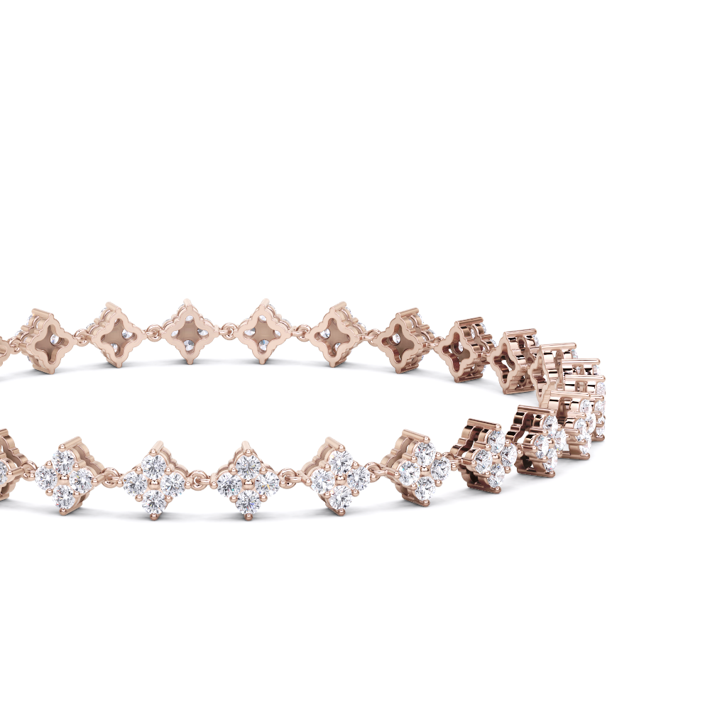 This bracelet features a series of round, brilliant-cut diamonds set in a floral or cluster design. The bracelet has a secure clasp with a small, rectangular detail. The diamonds are closely set, creating a continuous line of sparkle around the wrist.