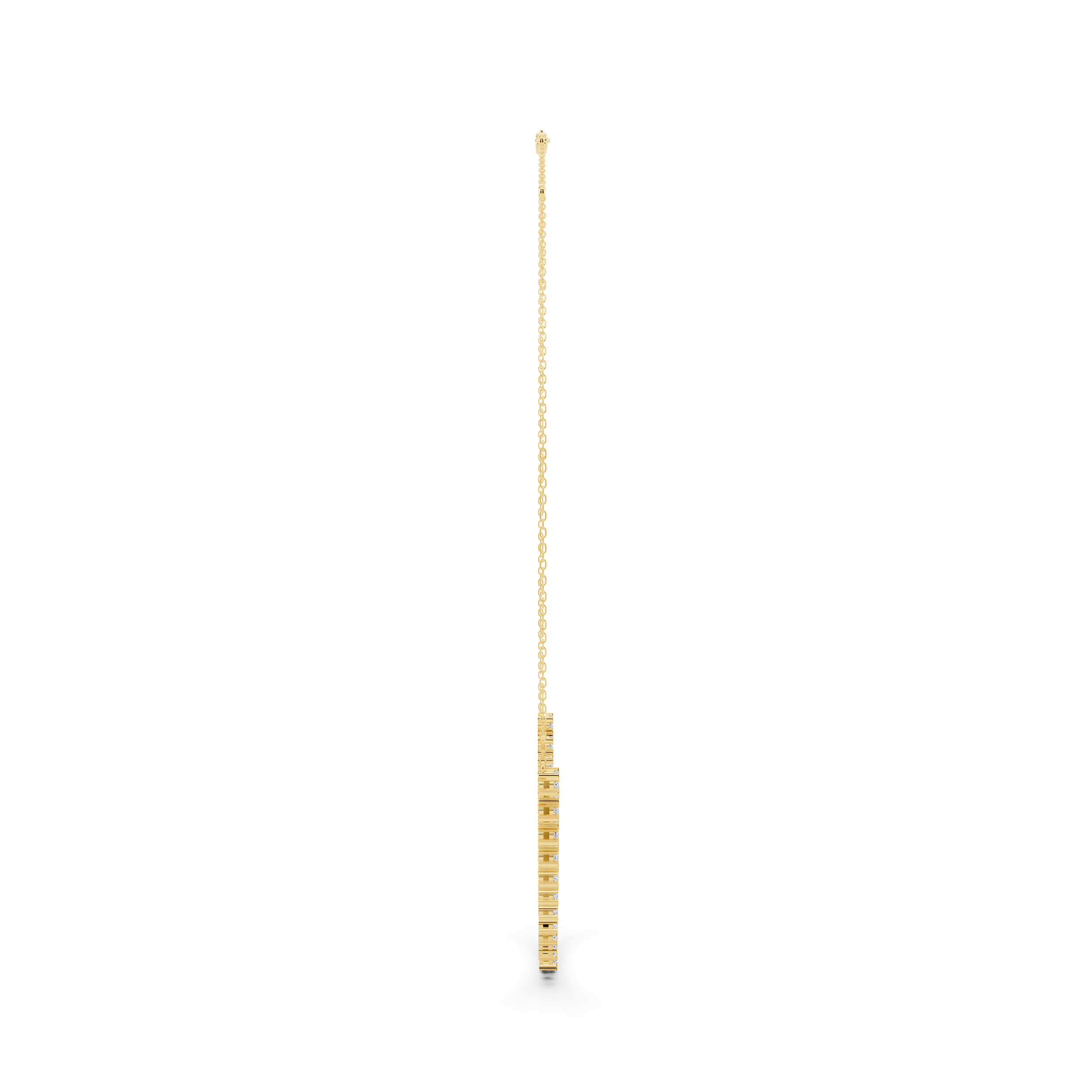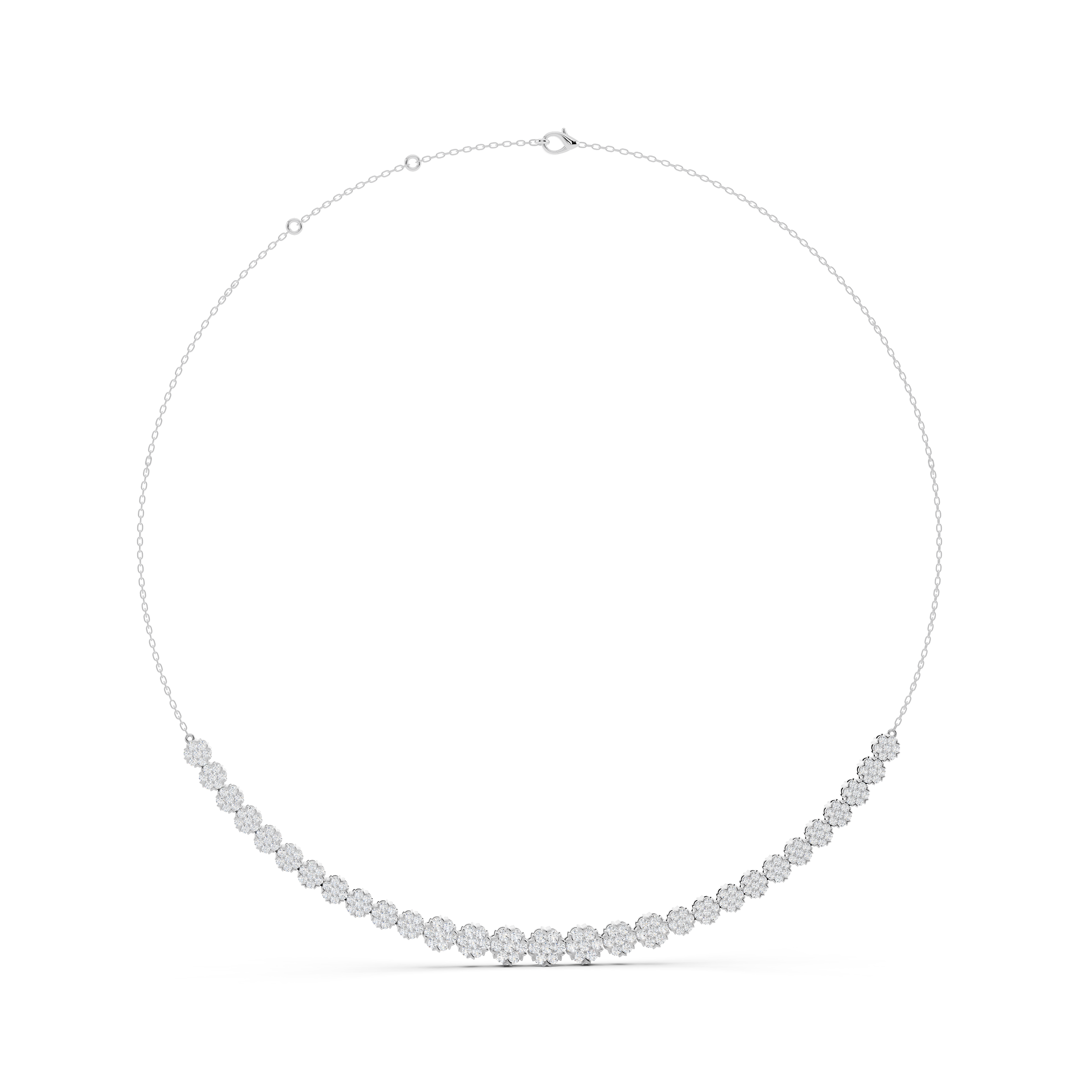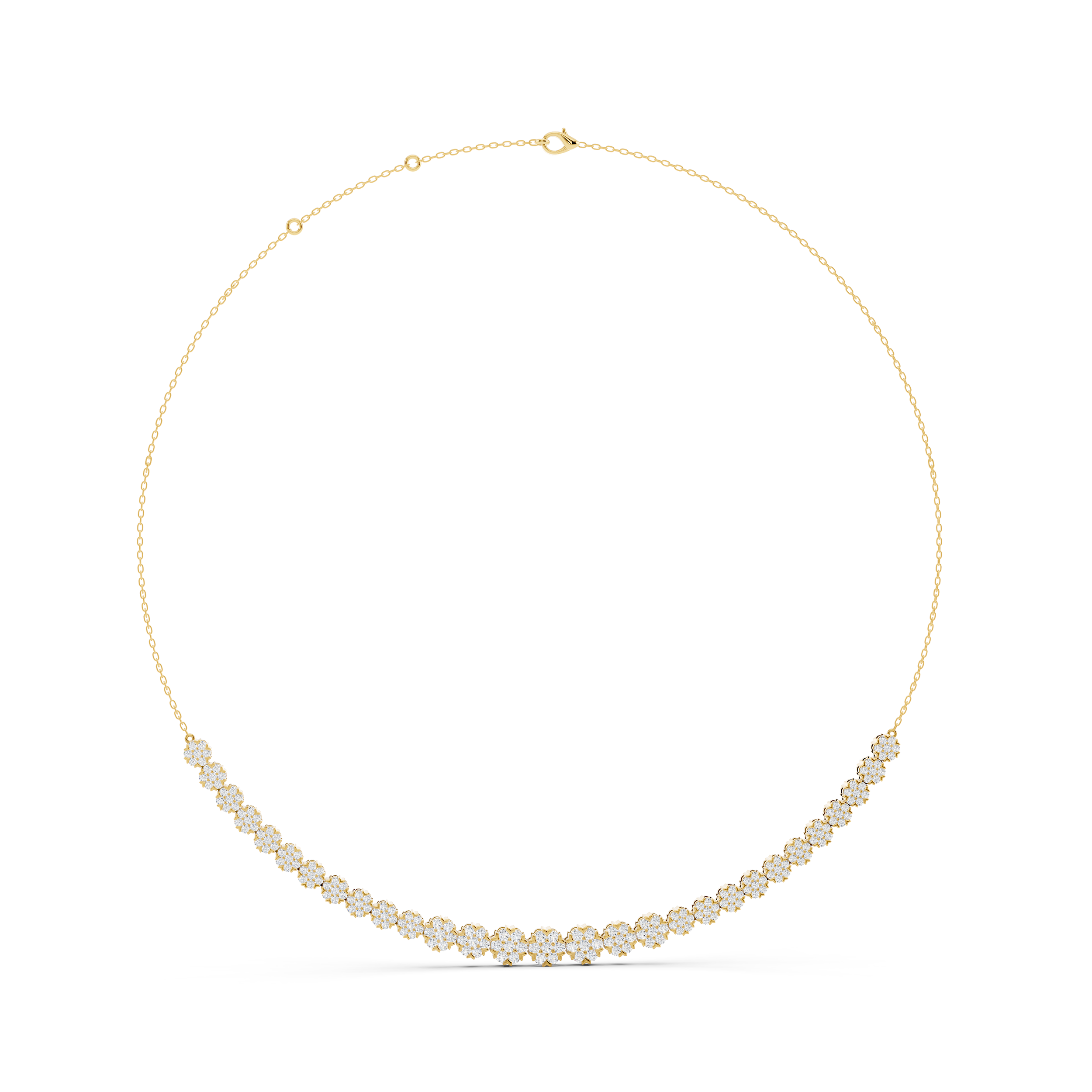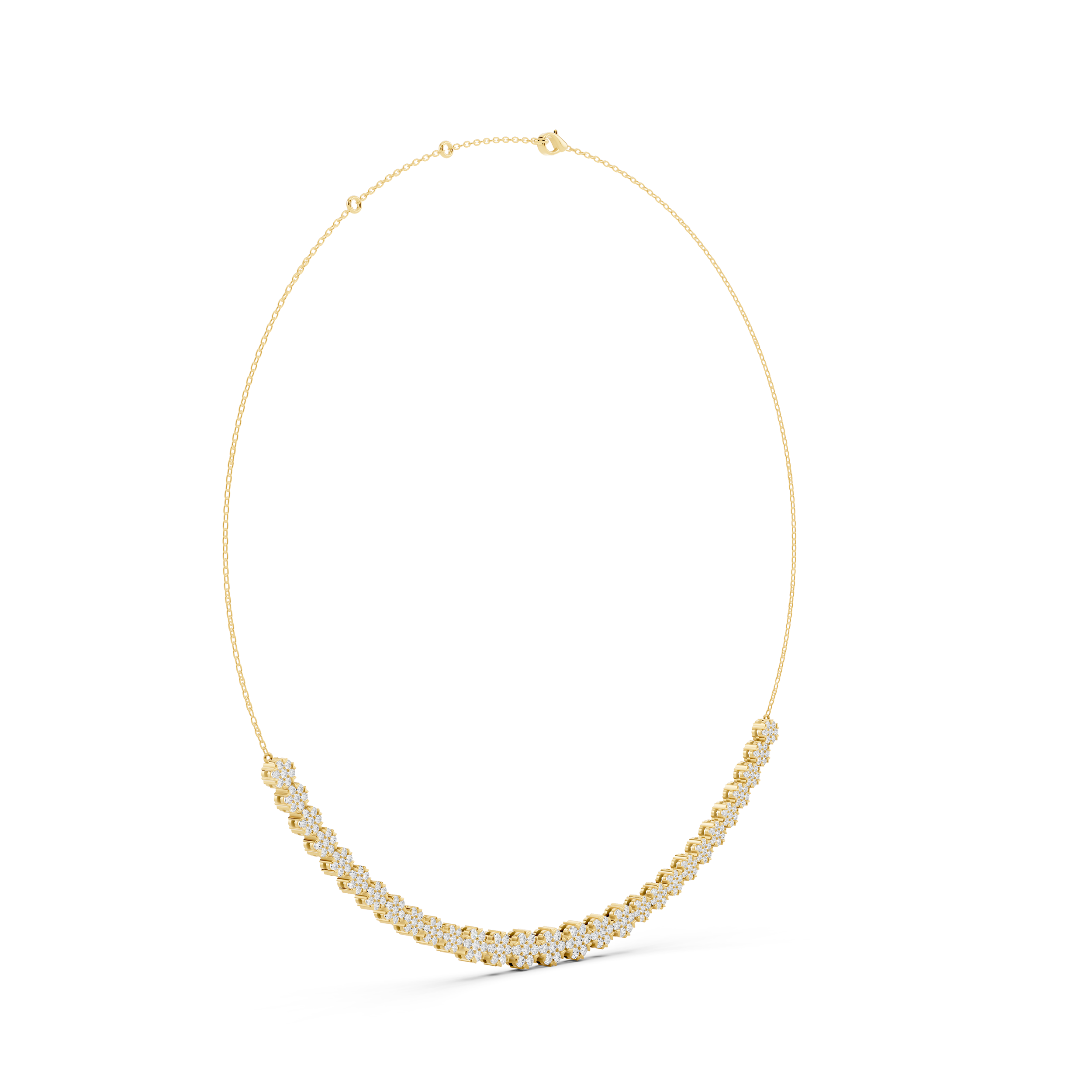 A contemporary necklace featuring a seamless line of round stones that gracefully spans the front, creating a half-and-half design that blends modern geometry with everyday elegance. With its clean silhouette and subtle sparkle, it’s perfect for layering or standing beautifully on its own.