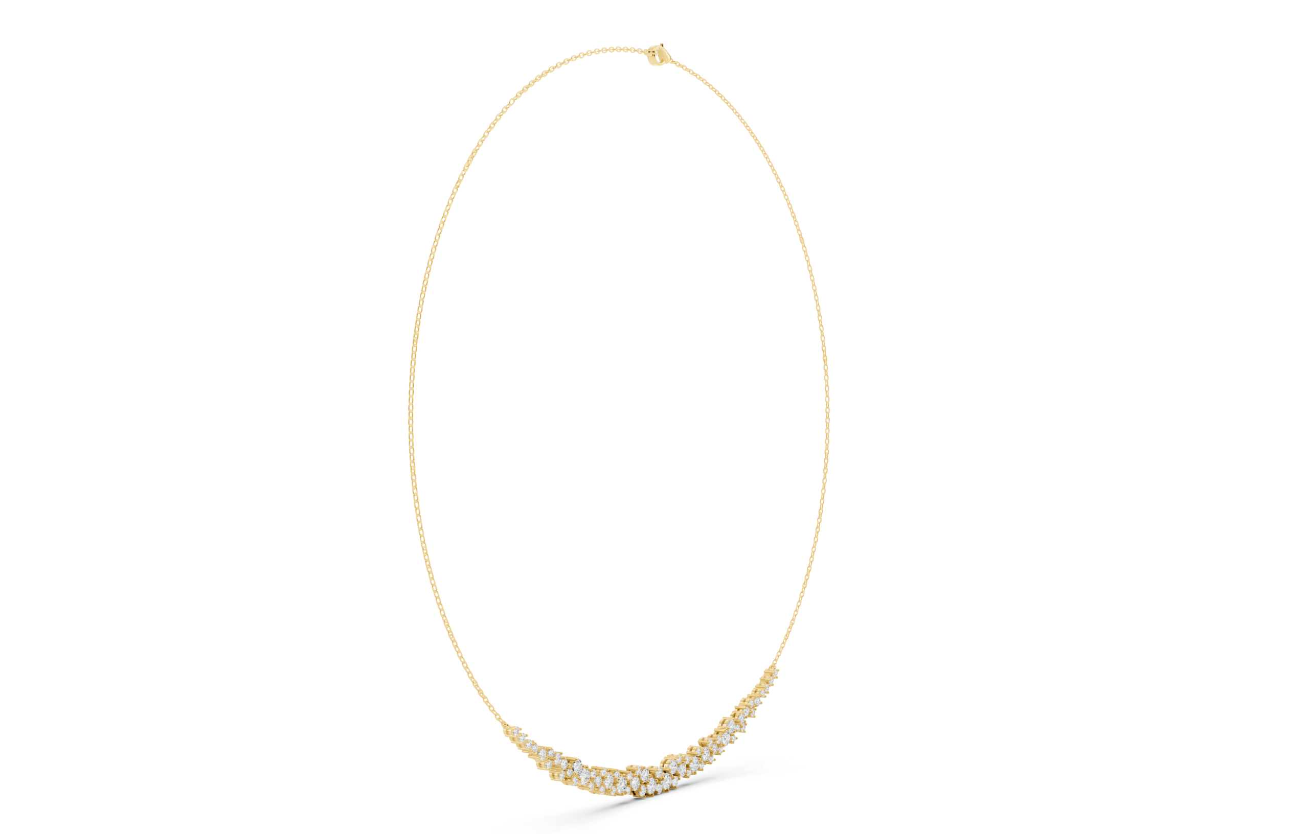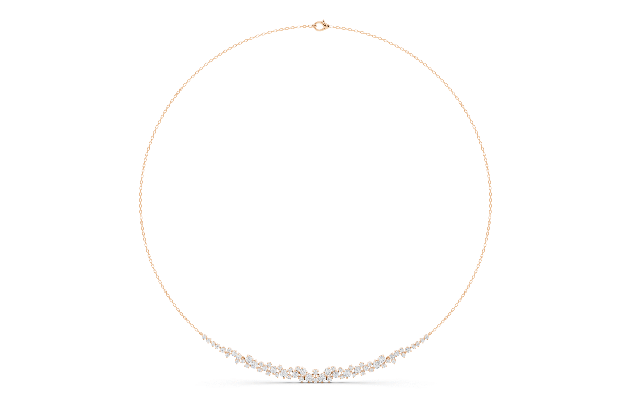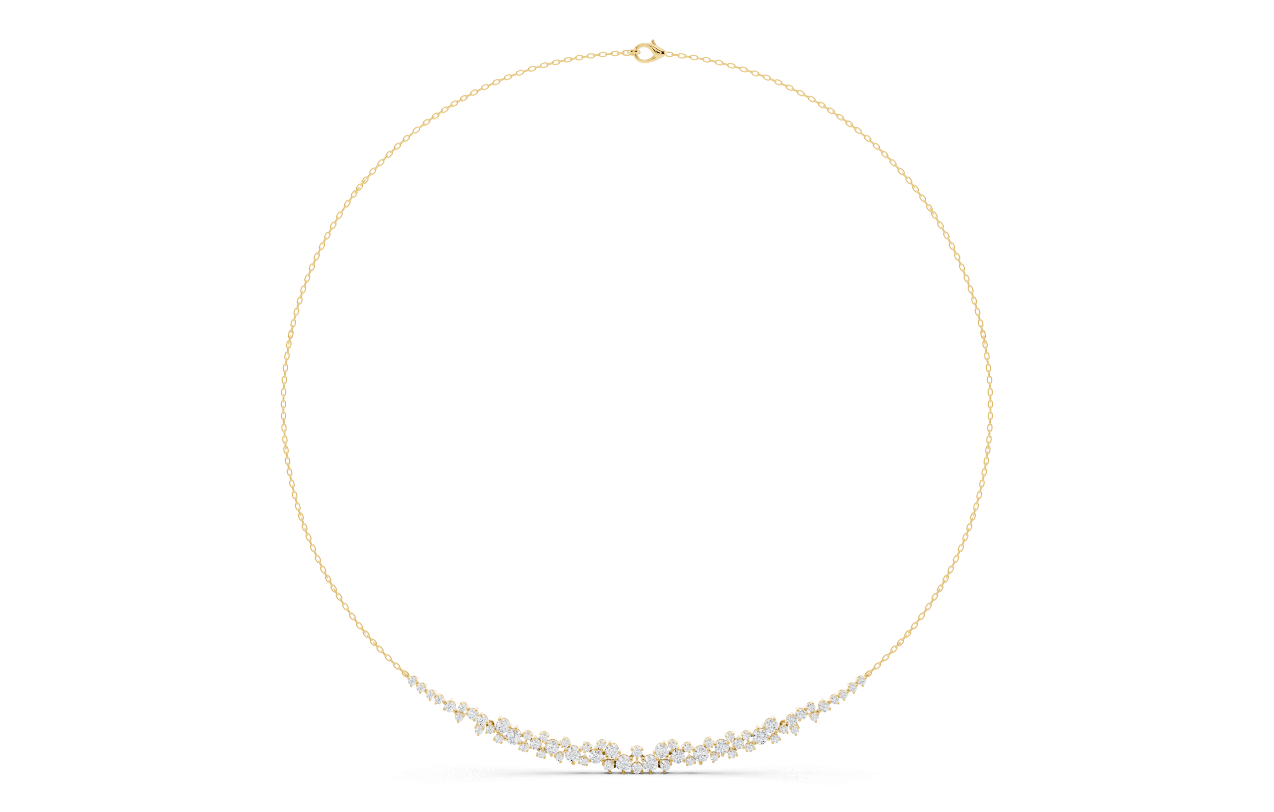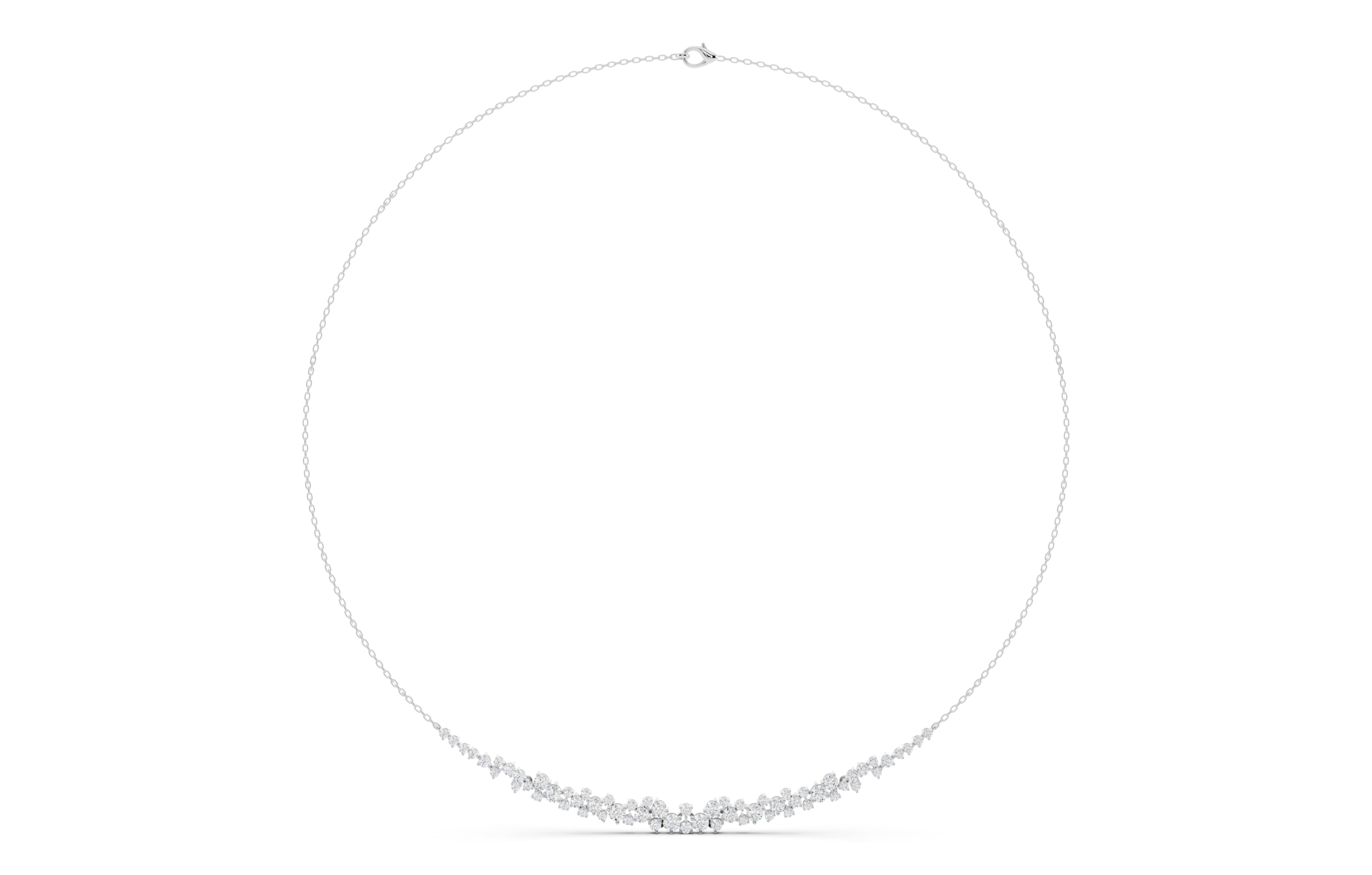 A graceful necklace featuring a flowing line of floral-inspired clusters that taper gently along the neckline. Each cluster blooms with brilliance, creating a delicate vine-like effect that’s both elegant and romantic — ideal for special occasions or refined everyday luxury.