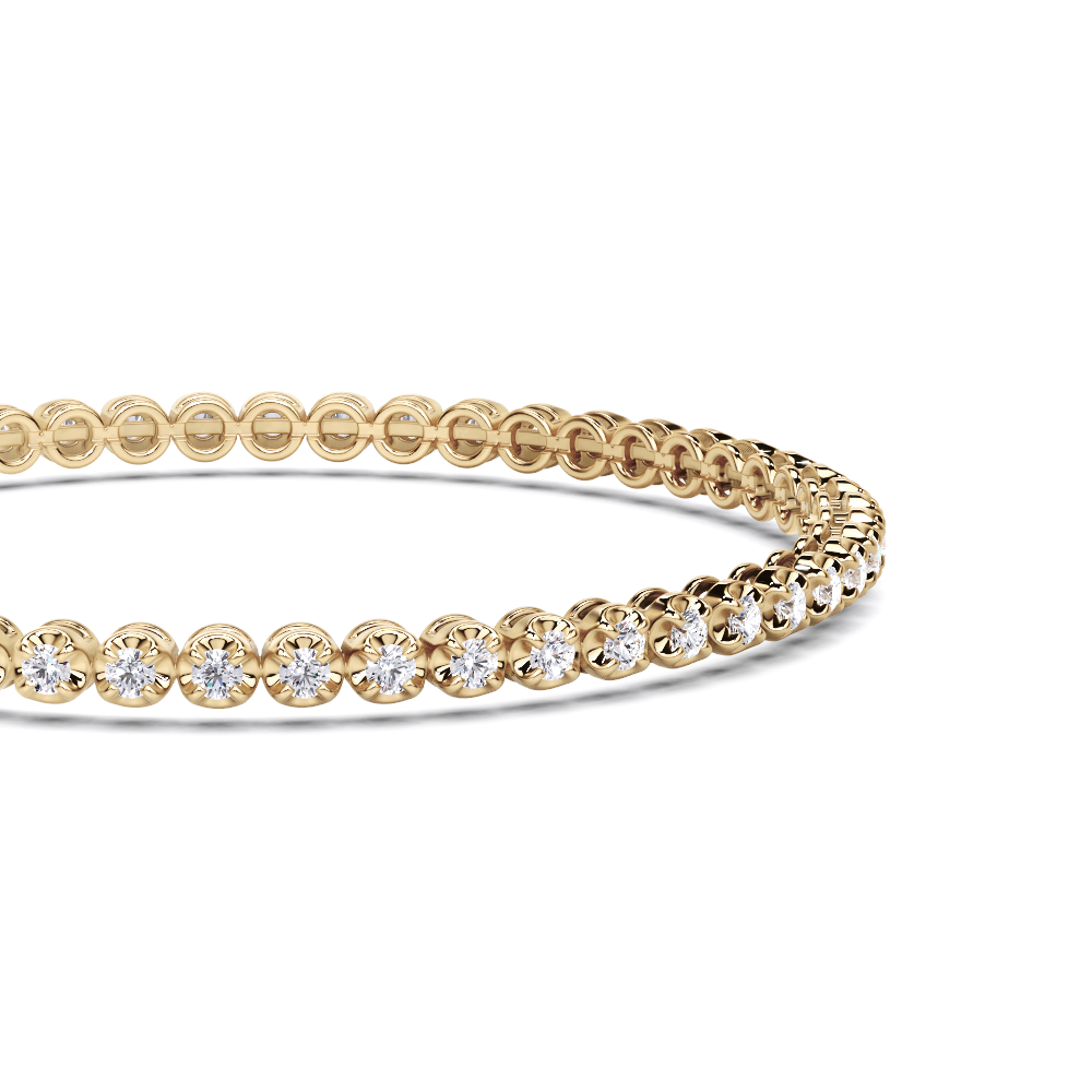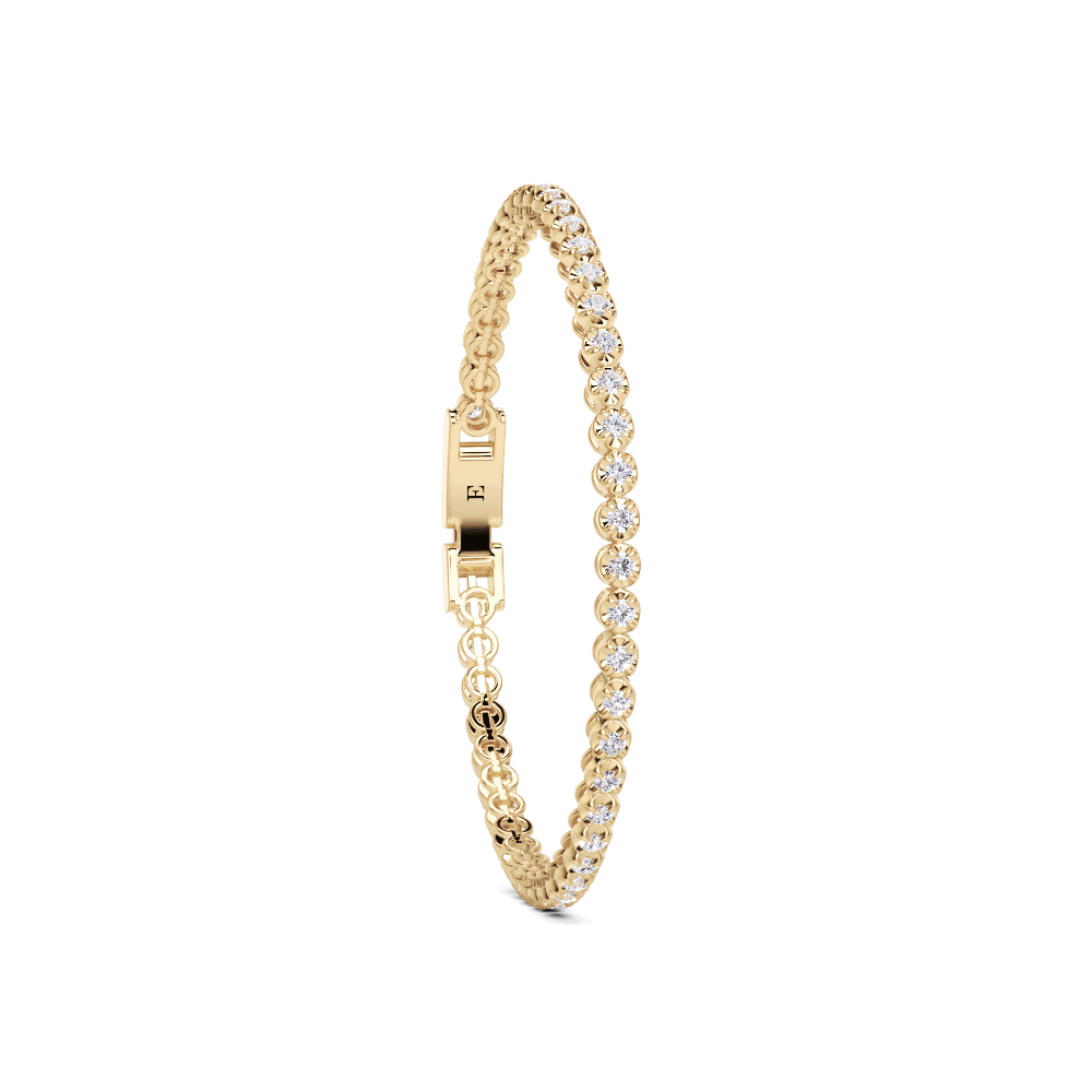 An ode to classic brilliance, this tennis bracelet is defined by a flawless row of round diamonds, each cradled in softly contoured settings that enhance light flow from every angle.Elegant, timeless, and endlessly wearable — this piece speaks in understated luxury and quiet confidence.