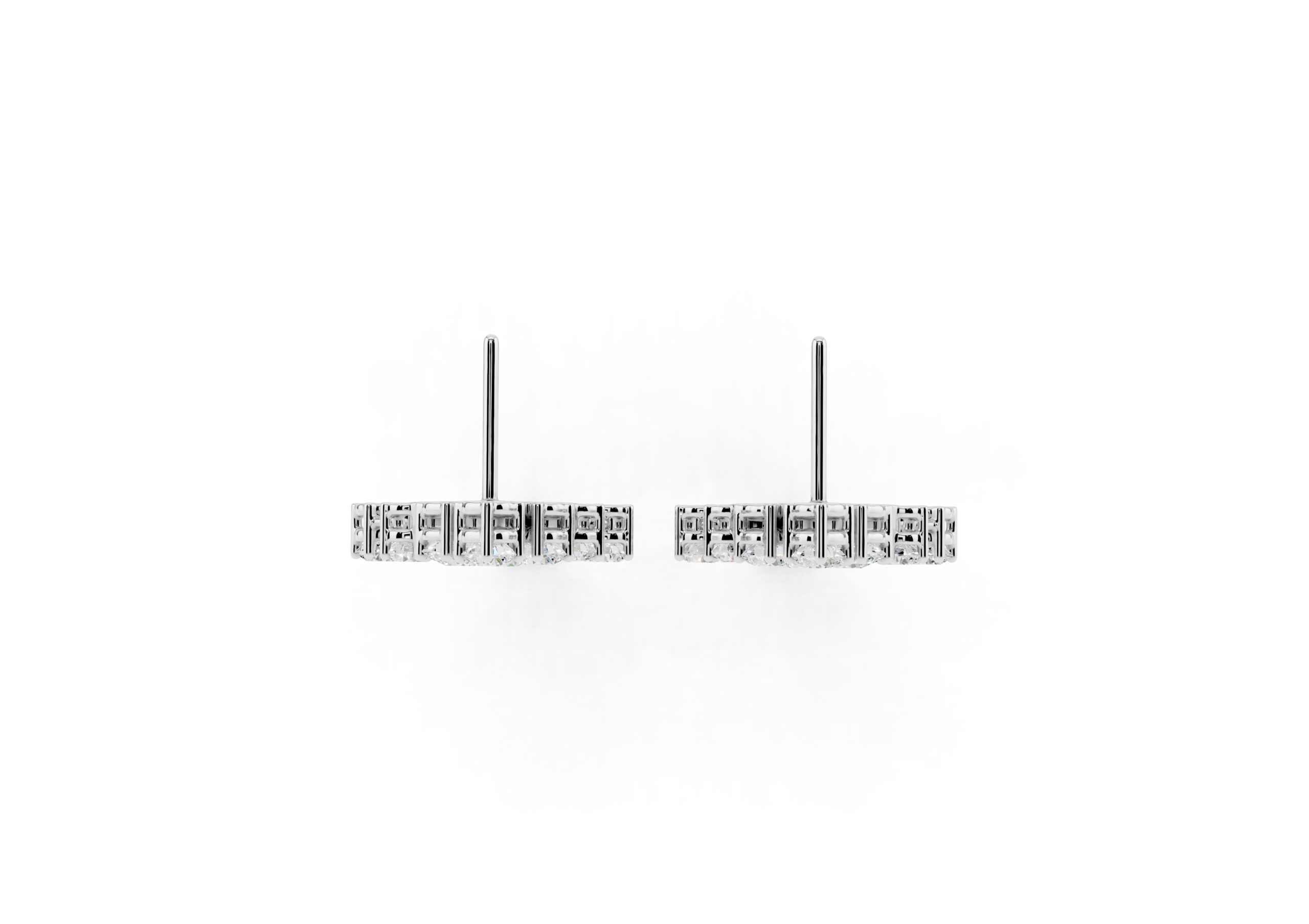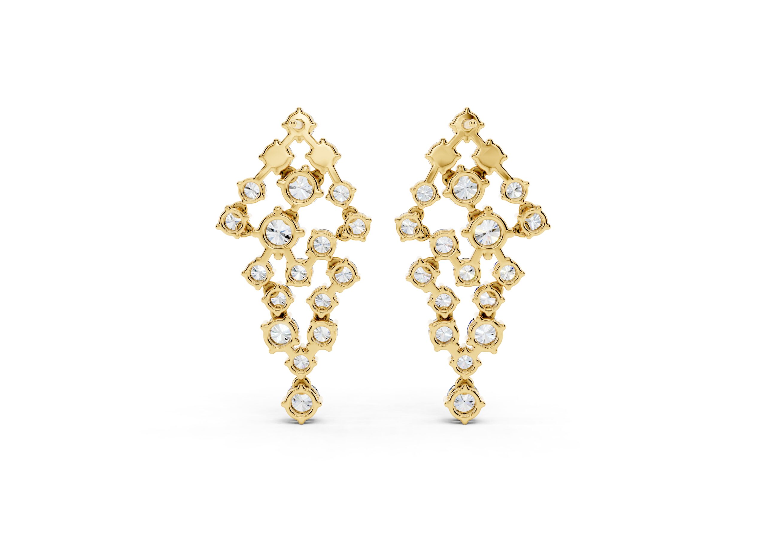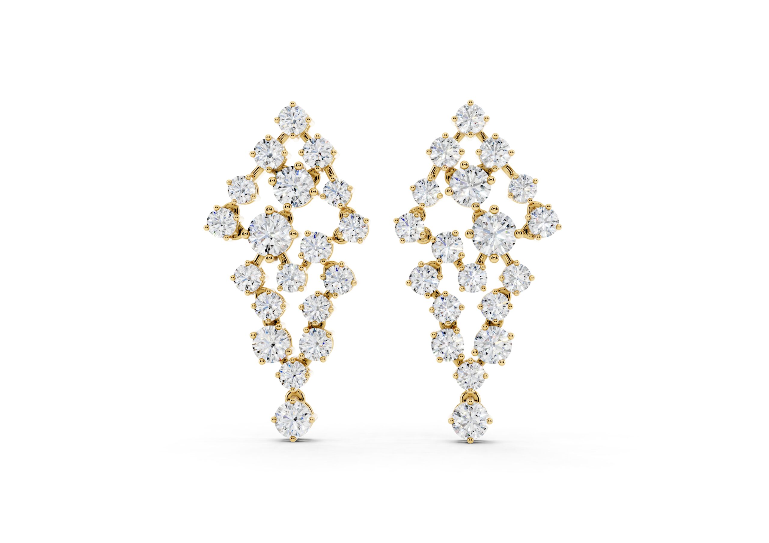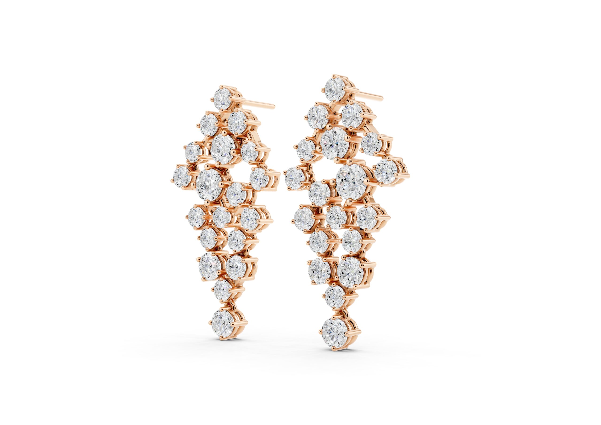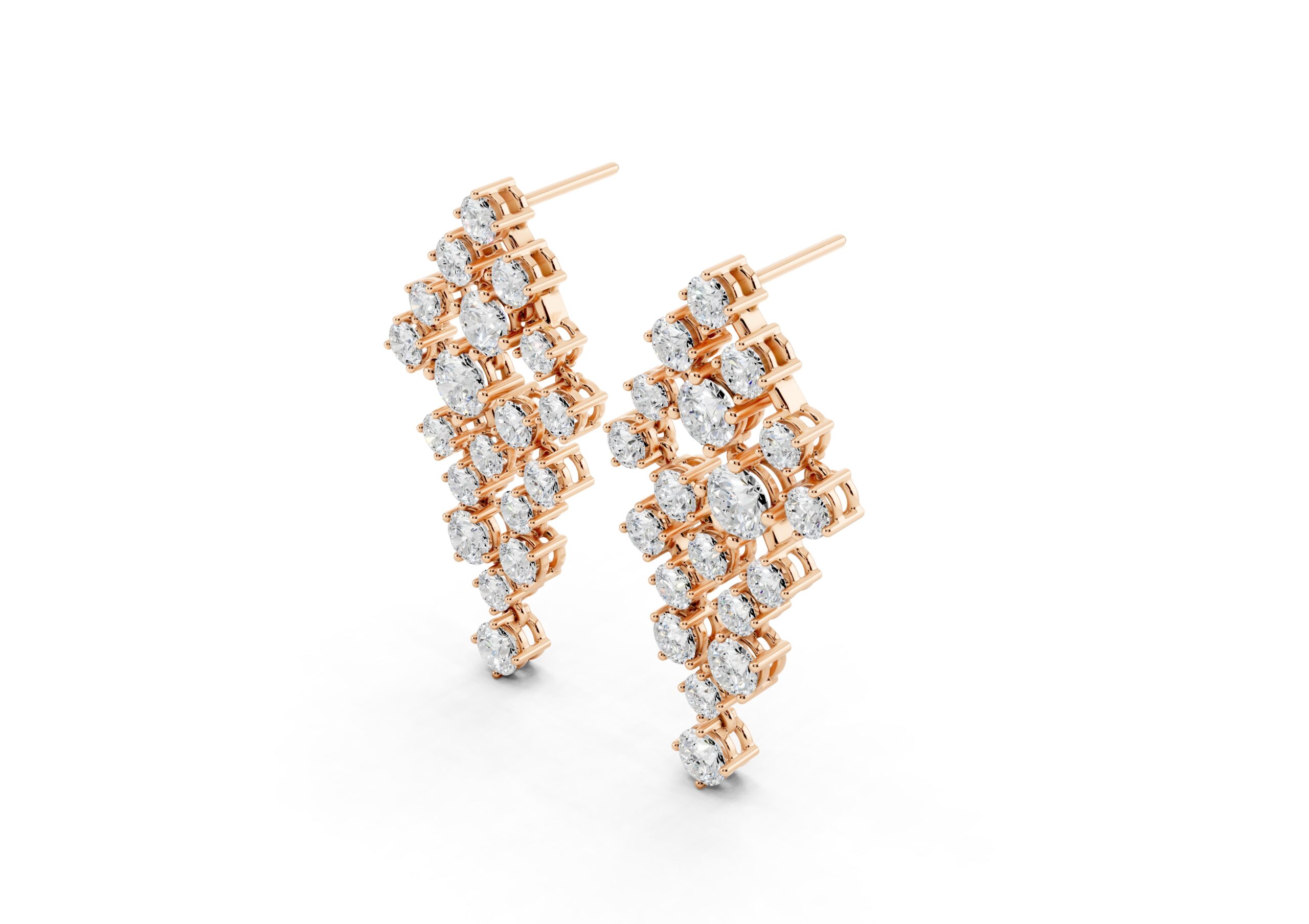 These earrings feature a graceful diamond taper that fans outward before narrowing to a single radiant drop. The strategic mix of diamond sizes creates dimension and movement, while the precise symmetry adds a sense of regal elegance. Bold yet delicate, they strike the perfect balance between statement and sophistication.