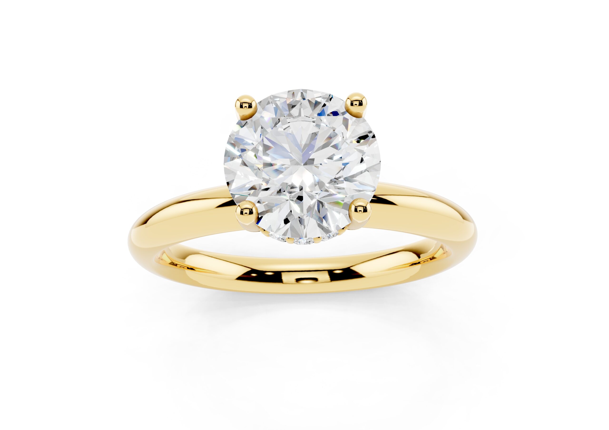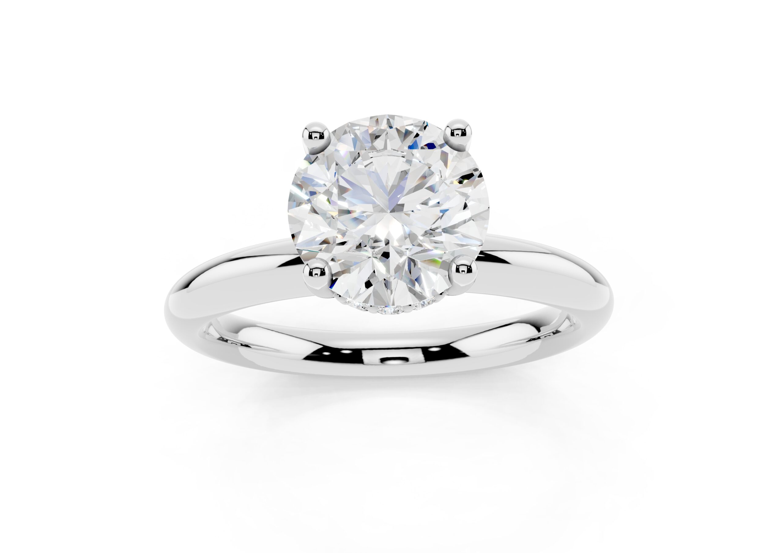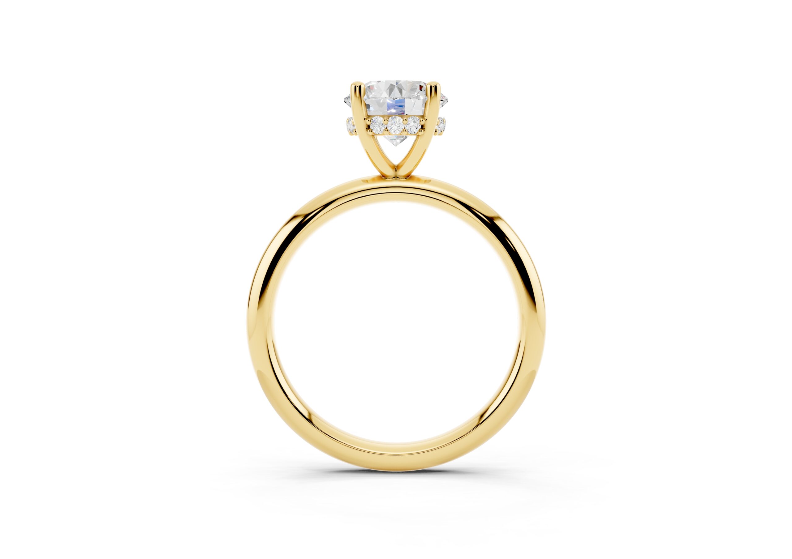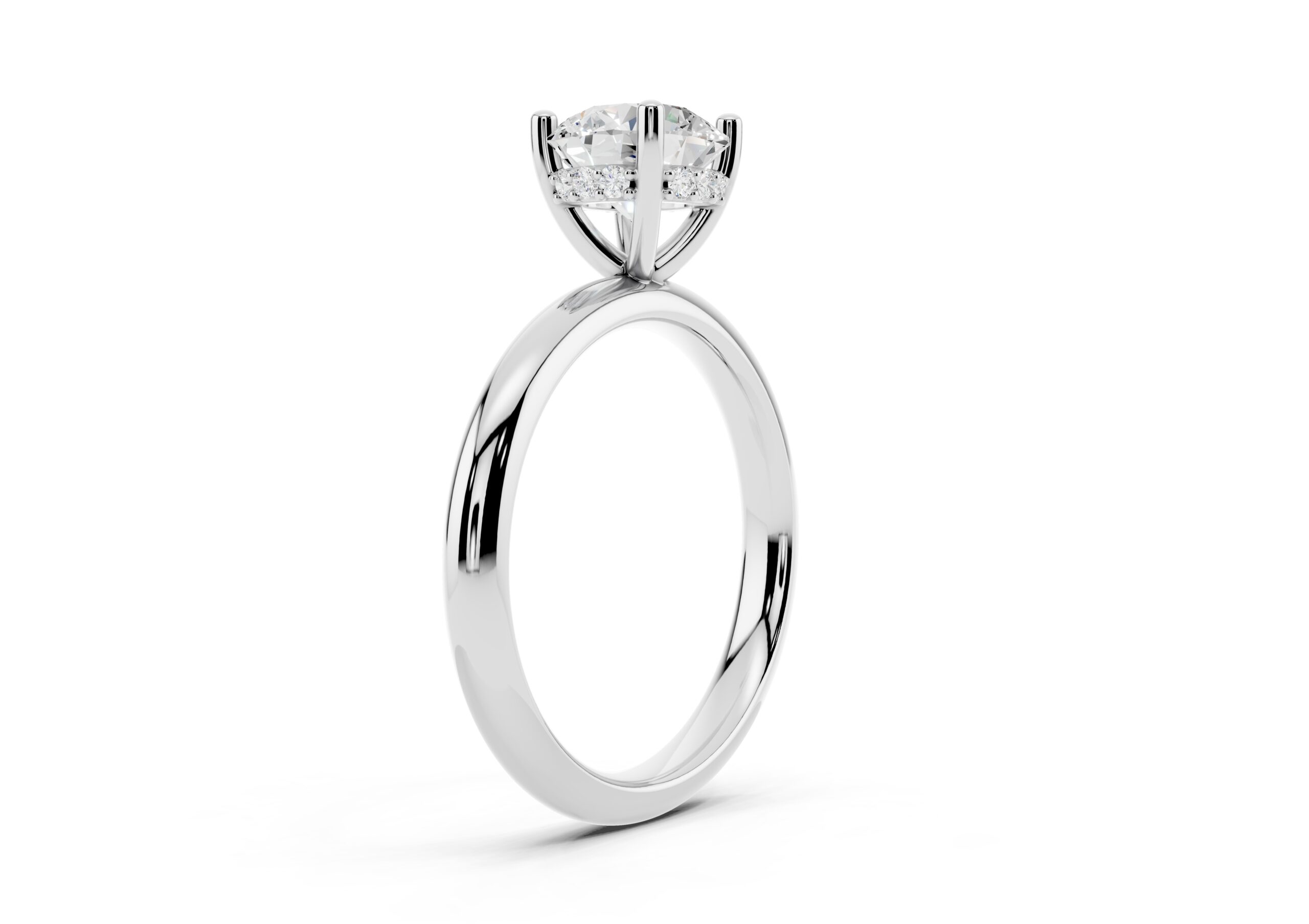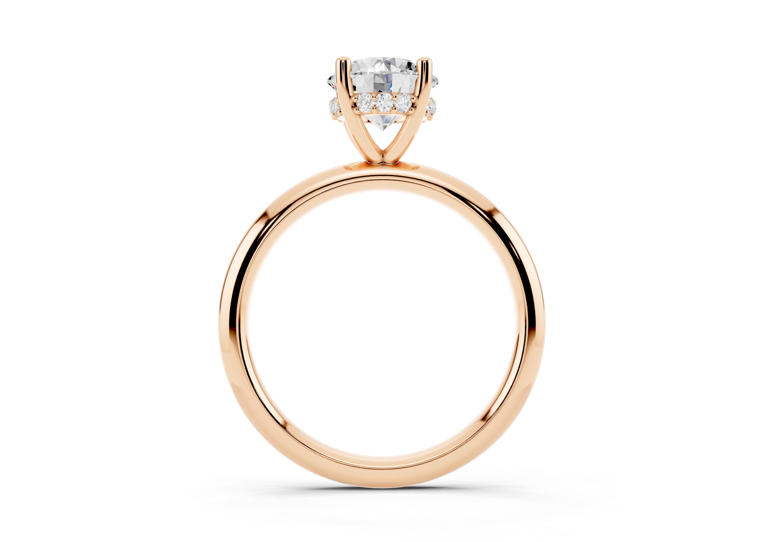 Classic at first glance, this solitaire ring hides a secret sparkle beneath the surface. A luminous round diamond sits in a graceful four-prong setting, with a delicate hidden halo of pavé-set diamonds encircling the base—creating a subtle radiance that glows from within. Refined, modern, and quietly dazzling, it’s a ring that shines for those who love elegance with a twist.
