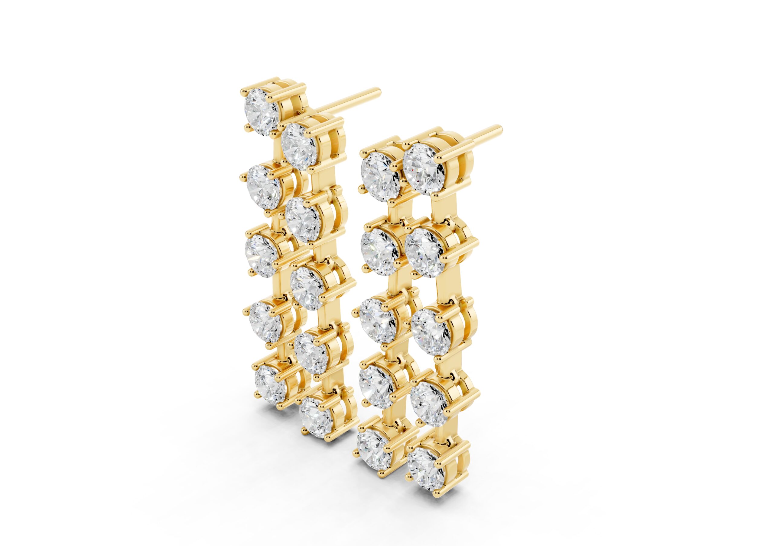 Sleek, fluid, and endlessly refined — these earrings feature two parallel strands of round diamonds, delicately connected to allow gentle movement and maximum shimmer. The minimal framework highlights the natural brilliance of each stone, creating an effortlessly modern silhouette with timeless charm. Perfect for evening elegance or understated glamour on any occasion.