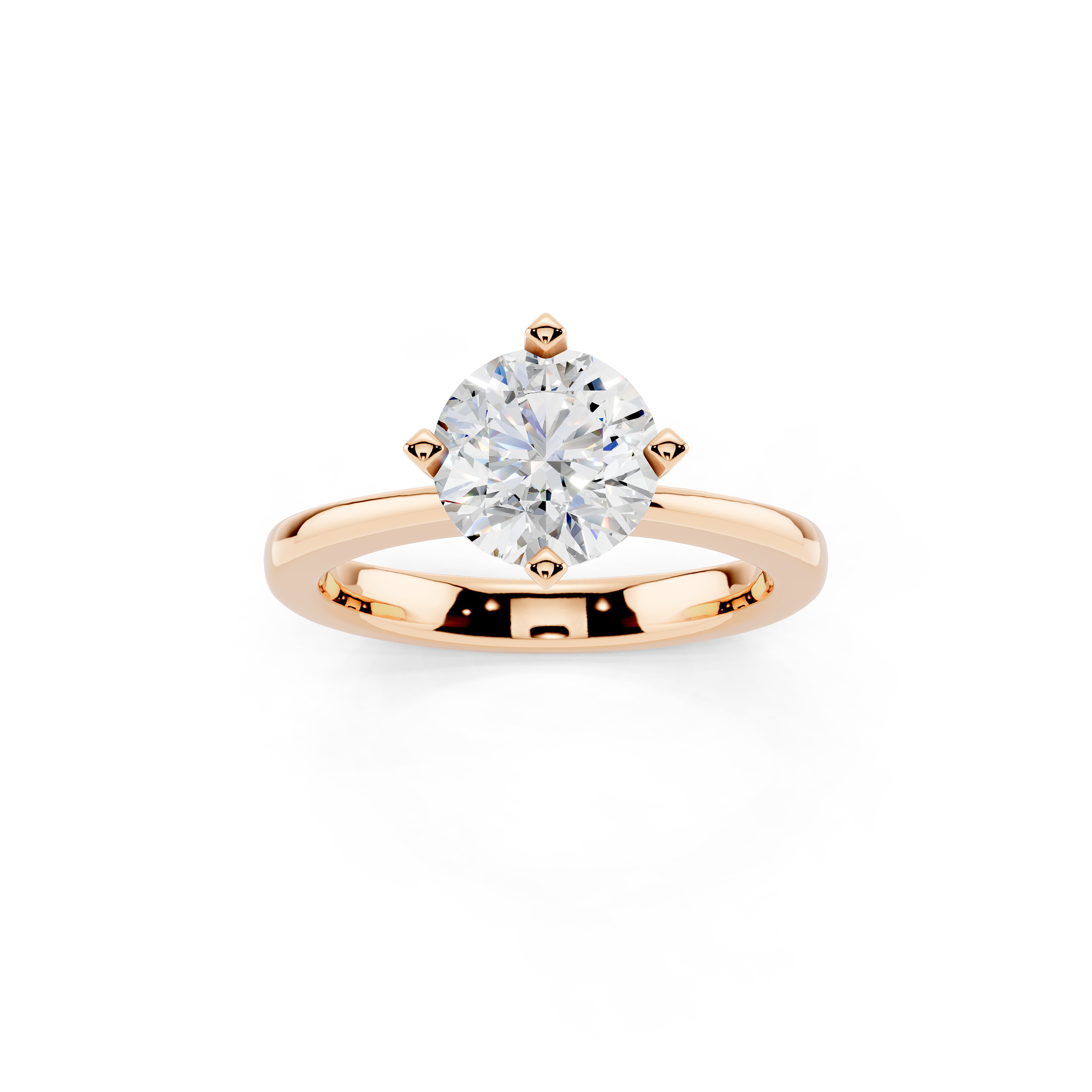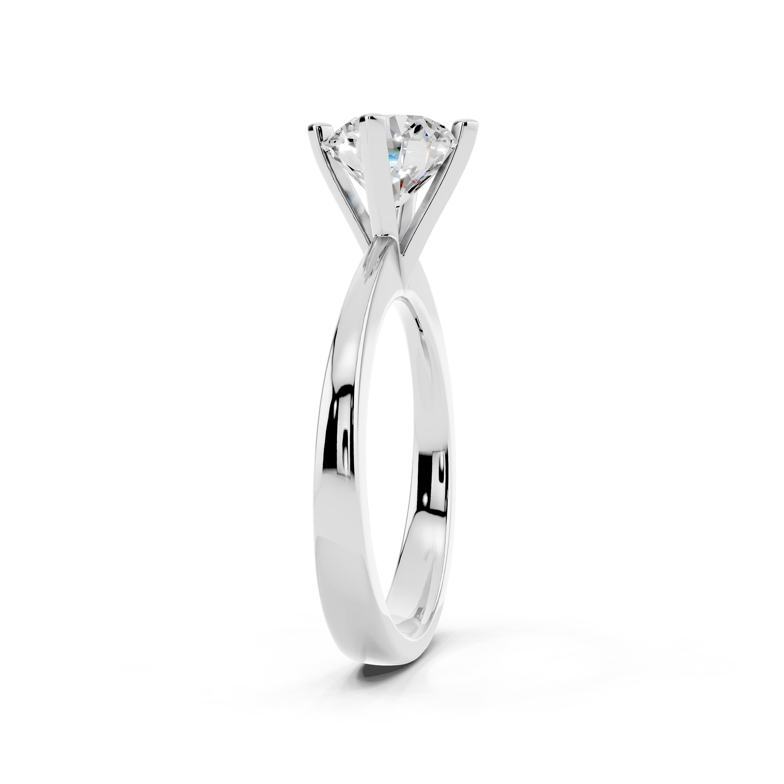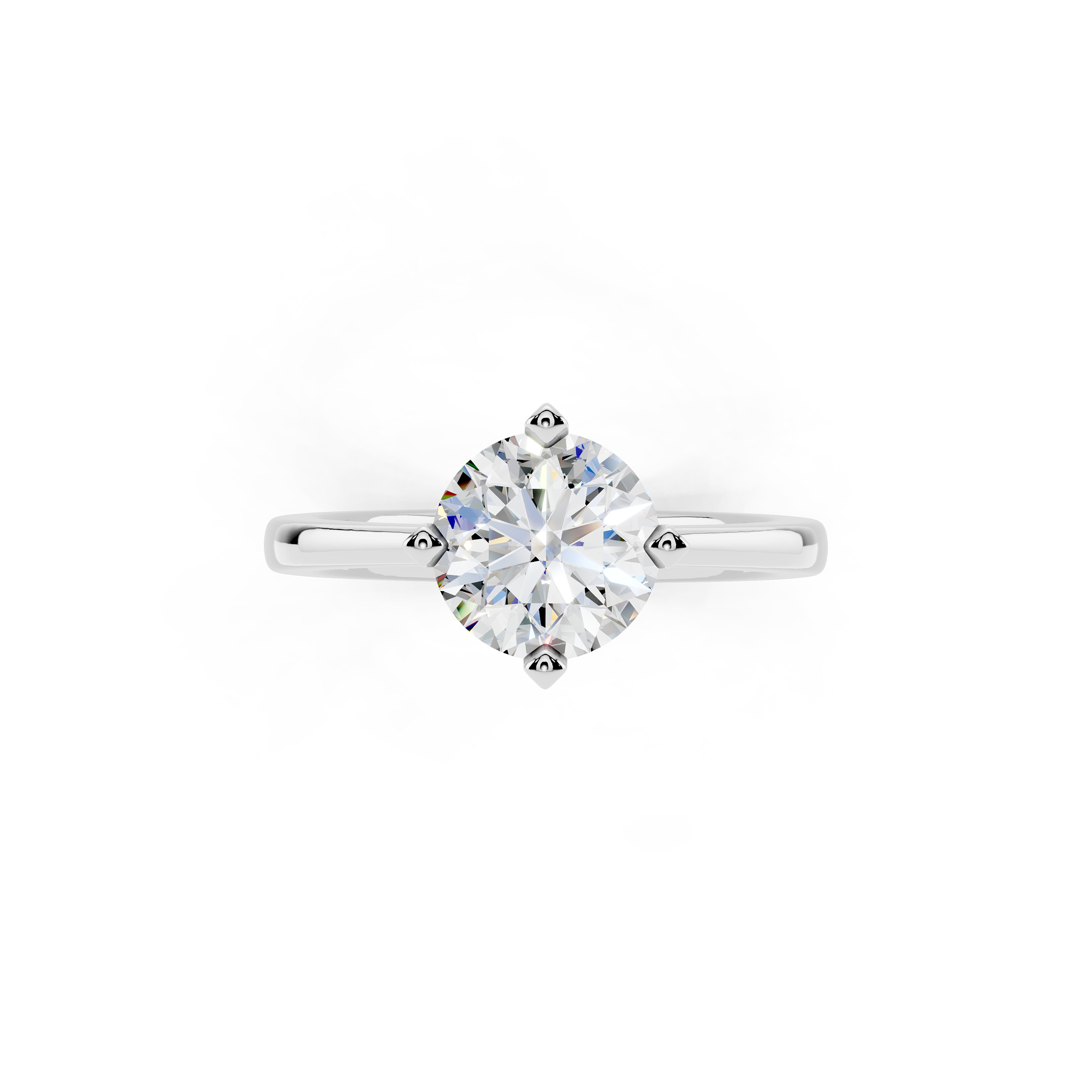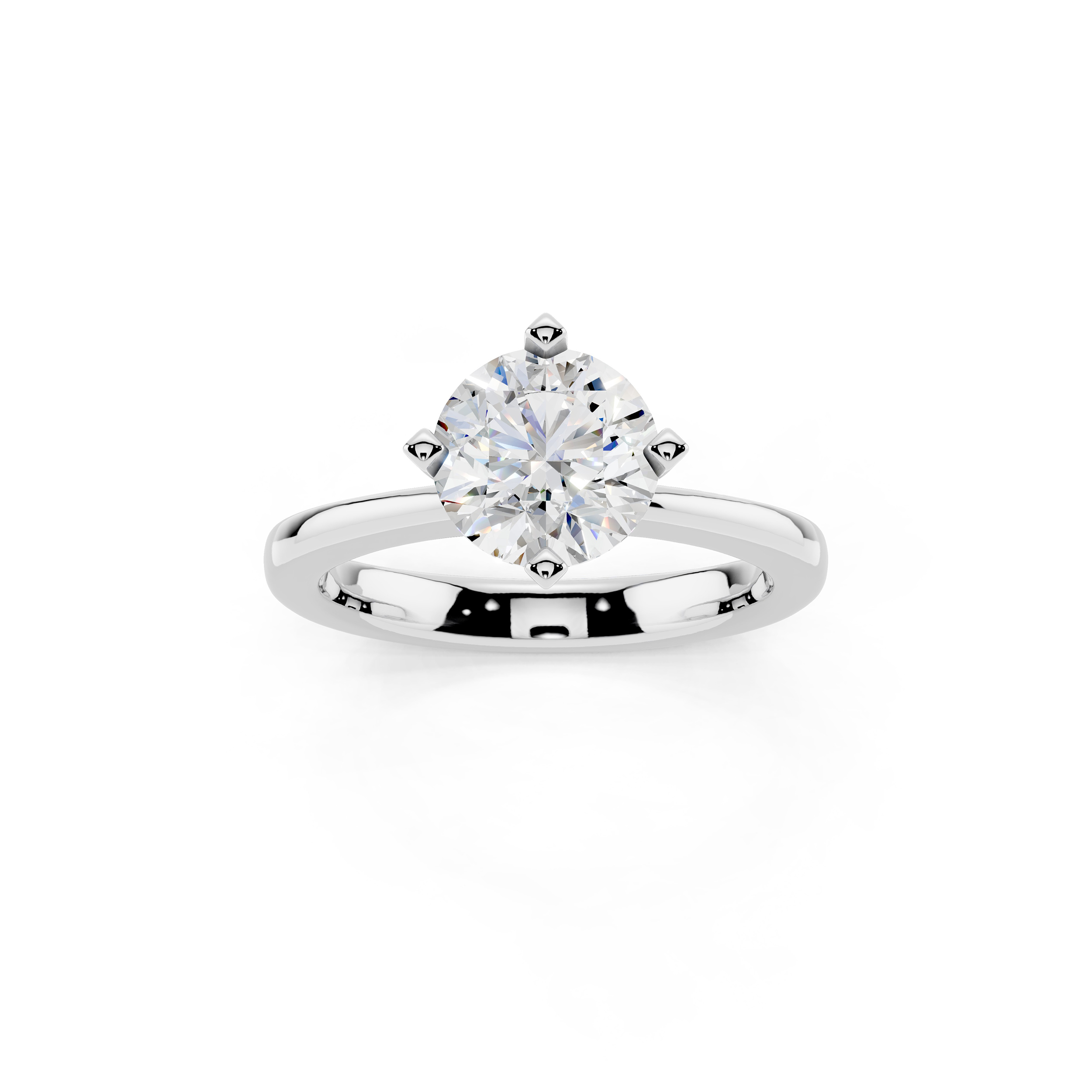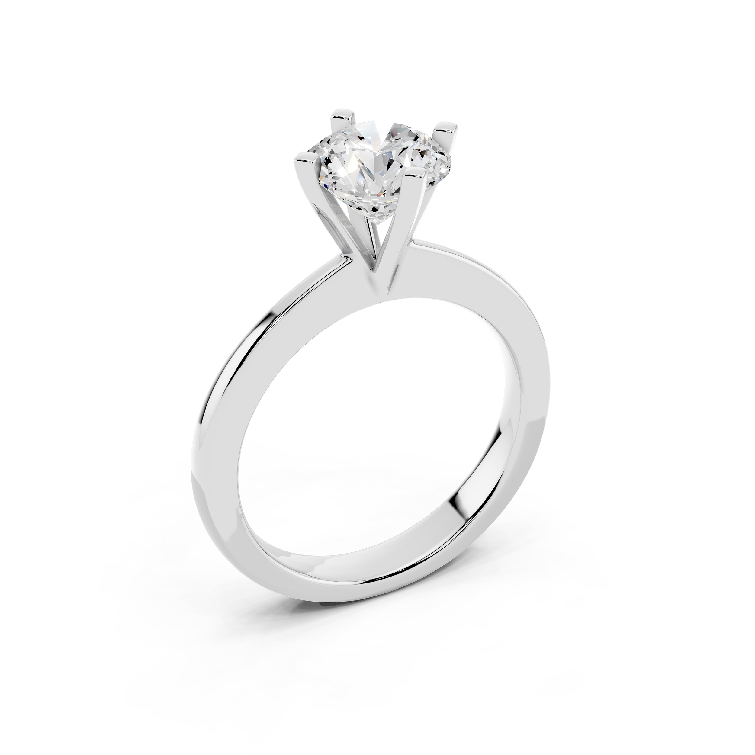 A timeless solitaire ring featuring a brilliant round center stone secured in a sleek four-prong setting. Set atop a smooth, high-polish band, this minimalist design balances modern elegance with classic charm—perfect for those who appreciate refined simplicity.
